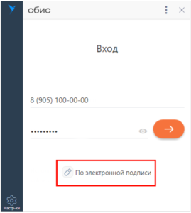 - Выполните вход в СБИС с помощью логина и пароля, который вам сообщили при регистрации, либо с помощью электронной подписи, чтобы проверить статус УПД.