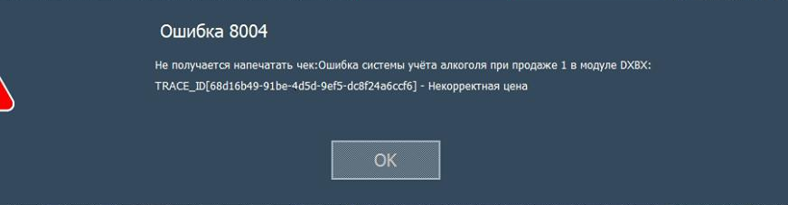 Не получается напечатать чек:Ошибка системы учёта алкоголя при продаже -1 в модуле DXBX:TRACE_ID[] - Некорректная цена