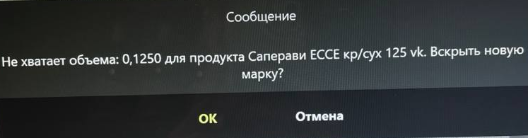 Не хватает объема: * для продукта *. Вскрыть новую марку?