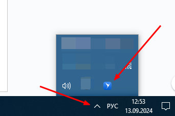 - Справа внизу на рабочем столе нужно нажать на символ: в области уведомлений и найти иконку плагина СБИС. Если плагин активен и работает, то иконка будет синего цвета. (При неактивном плагине иконка будет серой)