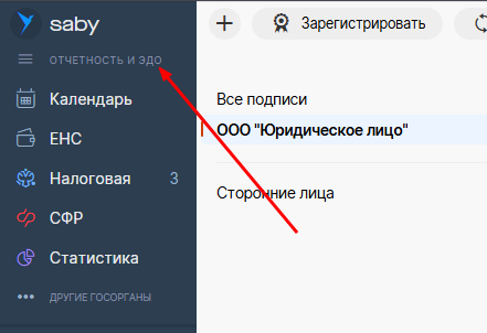 Обратите внимание, чтобы режим кабинета слева вверху был "Отчетность и ЭДО" или "Документооборот" (режим можно переключить, нажав на название)