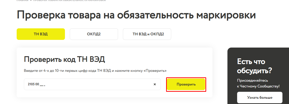 С его помощью можно понять подлежит ли товар маркировке по его ТН ВЭД, или другим идентификаторам, и прочесть подробности.