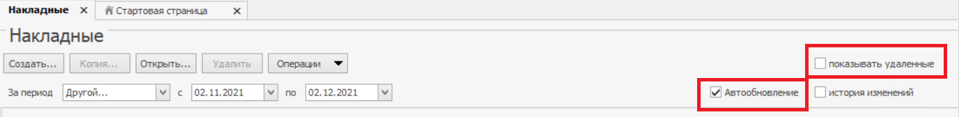 - Убедитесь, что отмечены галки на «Автообновление» и «Показывать удаленные».