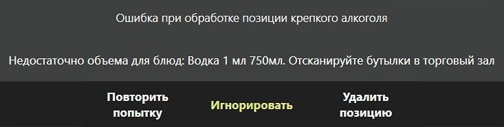 «Повторить попытку» — происходит повторная проверка, достаточно ли объема в ТЗ для проблемной алкогольной позиции.